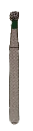 Рабочая часть 1,8 мм в диаметре с грубой алмазной фракцией абразива гарантирует комфортную работу. Хвостовик длиной 19 мм совместим со стандартным наконечником турбинного типа и стабилен при 450 000 об/мин.