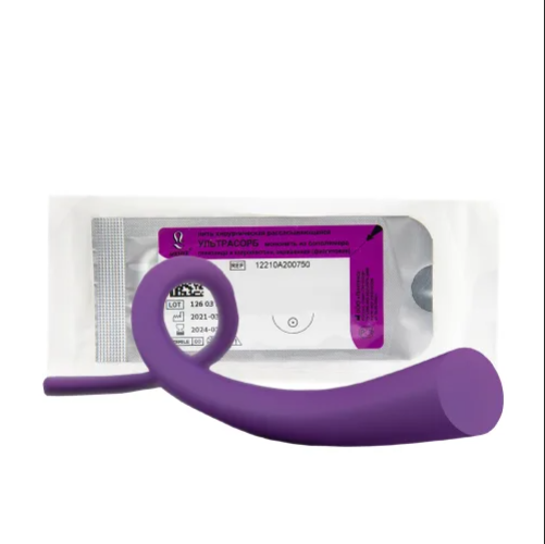 Материал Ультрасорб 3/0 применяется при наложении швов на мягкие ткани. Представляет собой моноволокно из сополимеров на основе капролактона и гликолида, которое саморассасывается со временем. Благодаря гладкой поверхности материала Ультрасорб он легко проходит через биологическую ткань. Благодаря монолитности нитей снижается вероятность воспаления, снижается травматичность при соединении тканей.